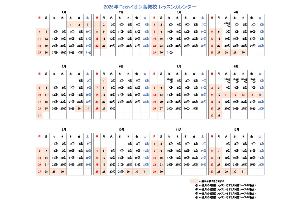 2026年度レッスンカレンダーが