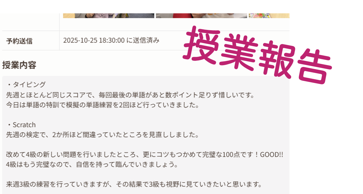 伸び悩んでいる時期には、保護者様へは包み隠さず状況をご報告し、時には「性格の変化」「学校の学習状況」「お家での気付き」など保護者様からヒントももらいながら毎回の授業に反映させていきます。