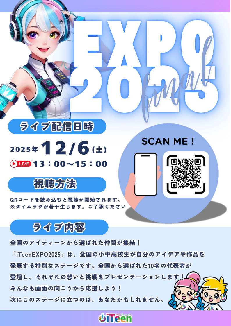 12月6日に大阪で実施される 年に1回の iTeenEXPO 最終選考会 に向け、