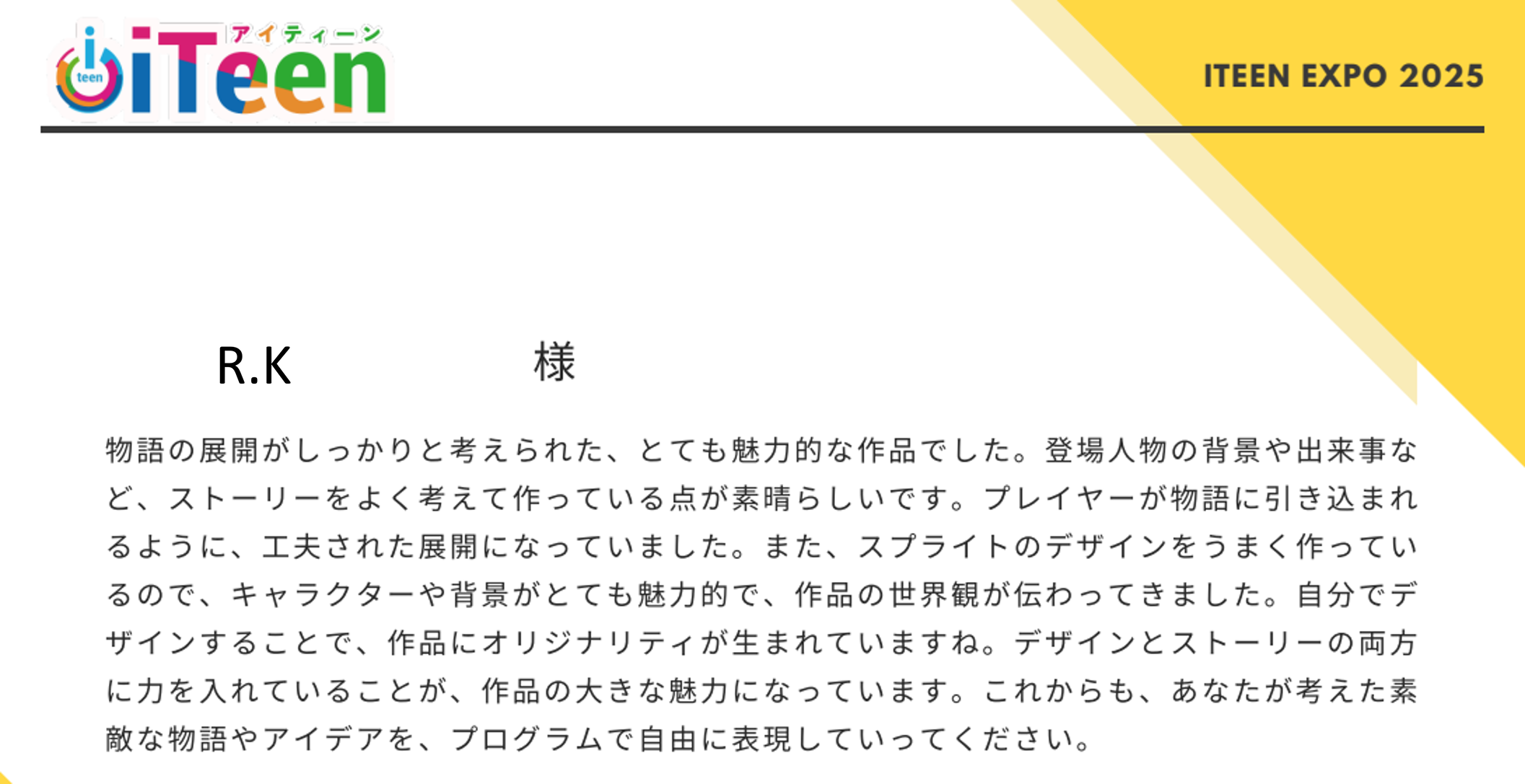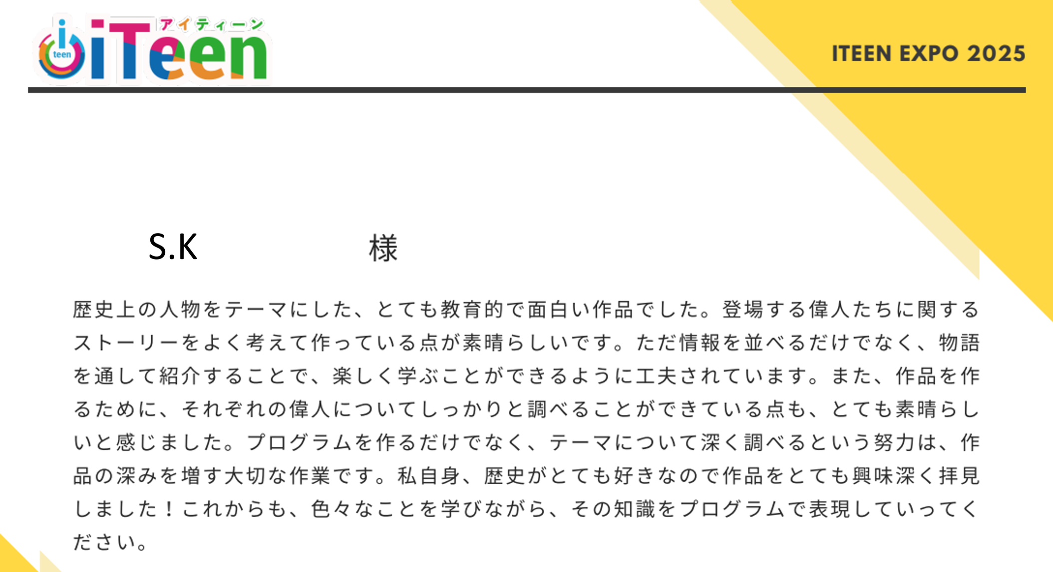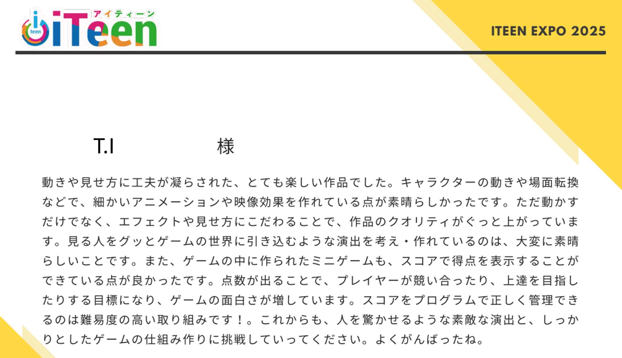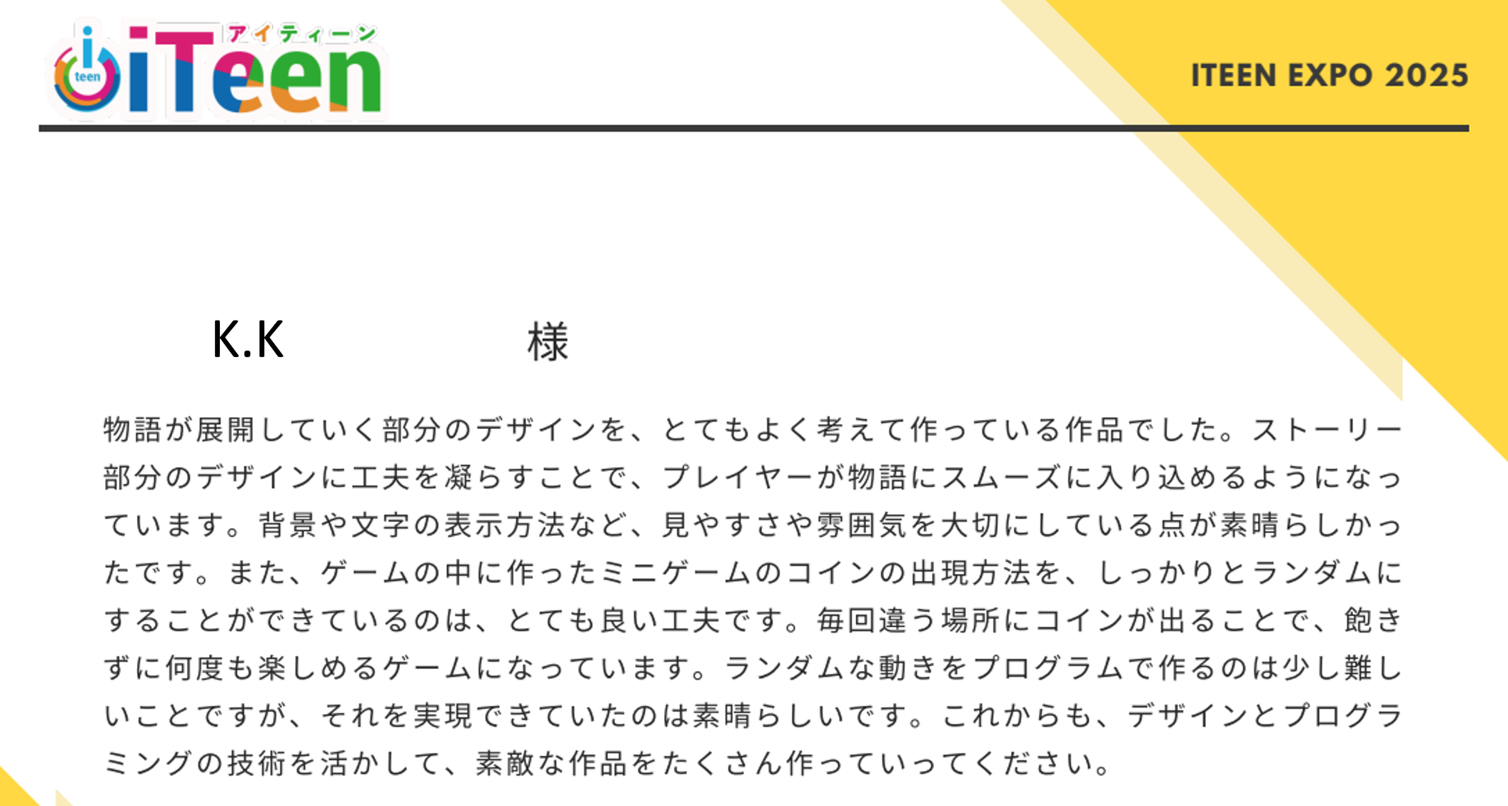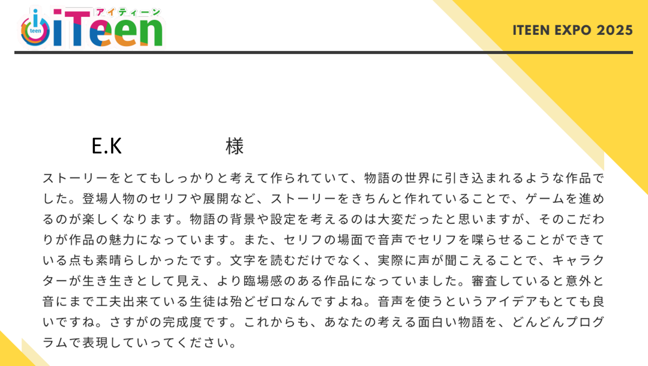 そのような想いもあり、運営側は各応募作品をジ~っくりと評価し、全ての作品に対し詳細な評価コメントを書いていくということです。