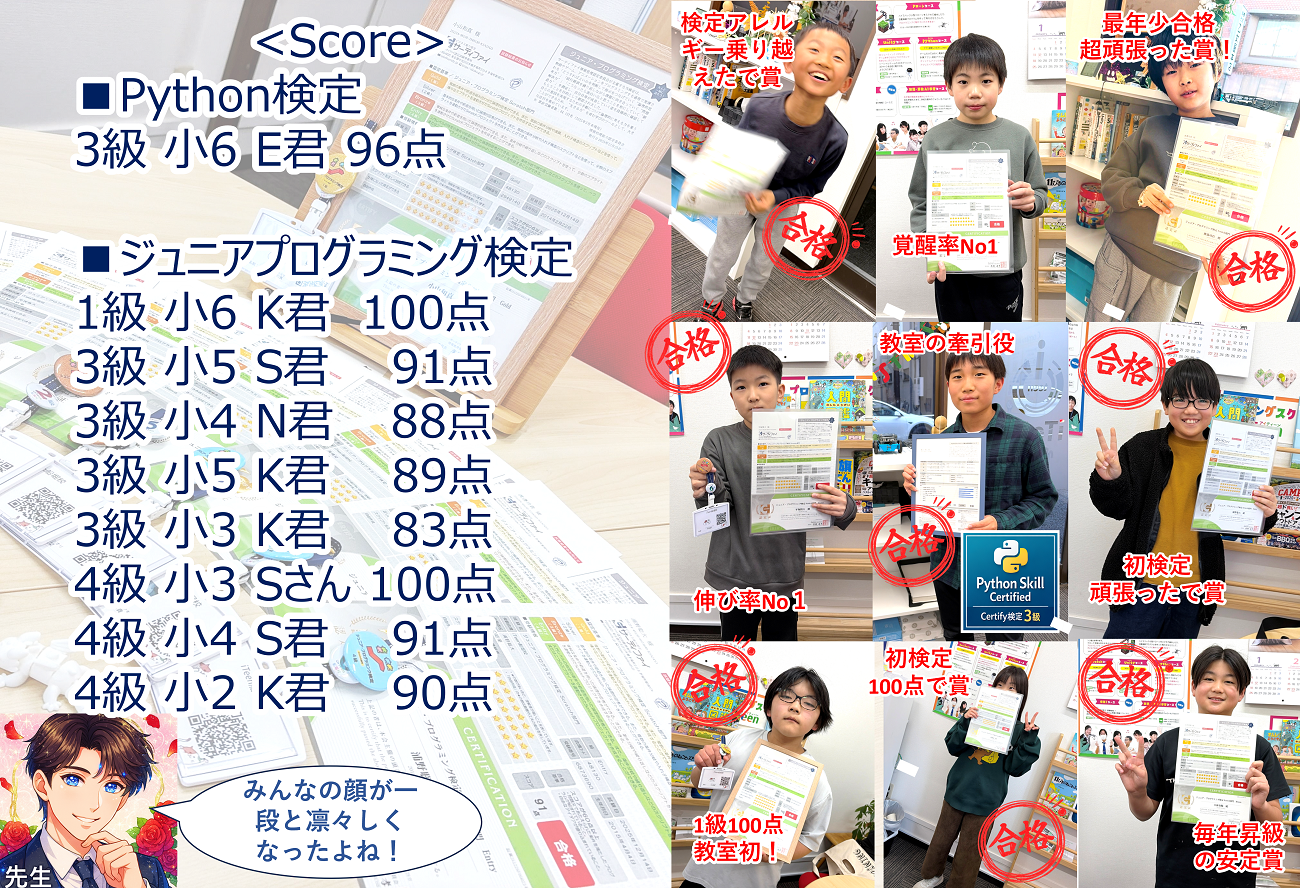 iTeen船堀校では、年2回実施しているプログラミング検定の2025年下期の結果が出そろいました。