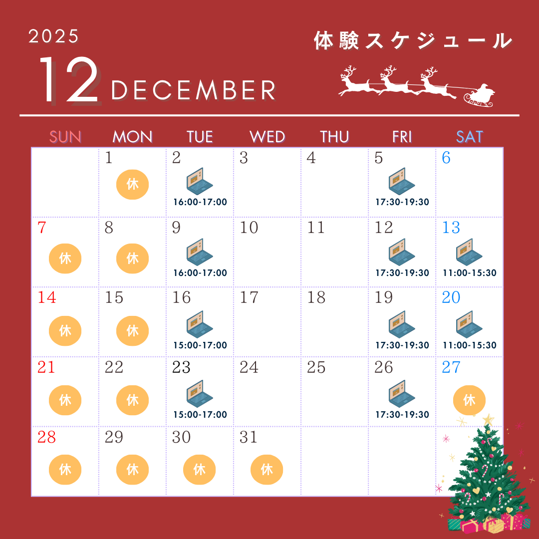 下の12月カレンダーに記載された日時に実施いたします。