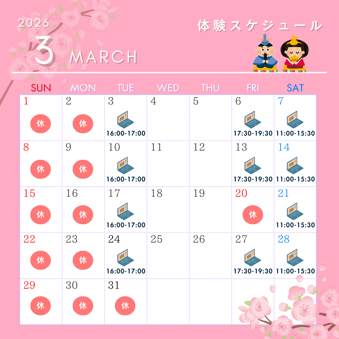 ※体験会の所要時間は60分となり、各回一組ずつの完全予約制体験会です。