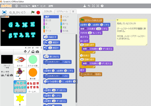 実際にScrachを使って、一つのゲーム作品をテーマに、