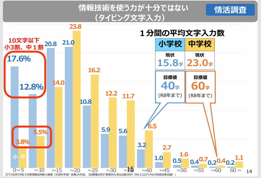 なお、文科省もタイピングスキルについて目安を出しています。