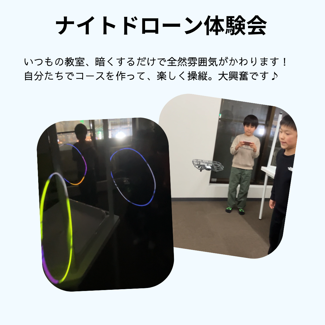 ナイトドローンは、普段の教室ですが暗くすることで大きく雰囲気が変わります。