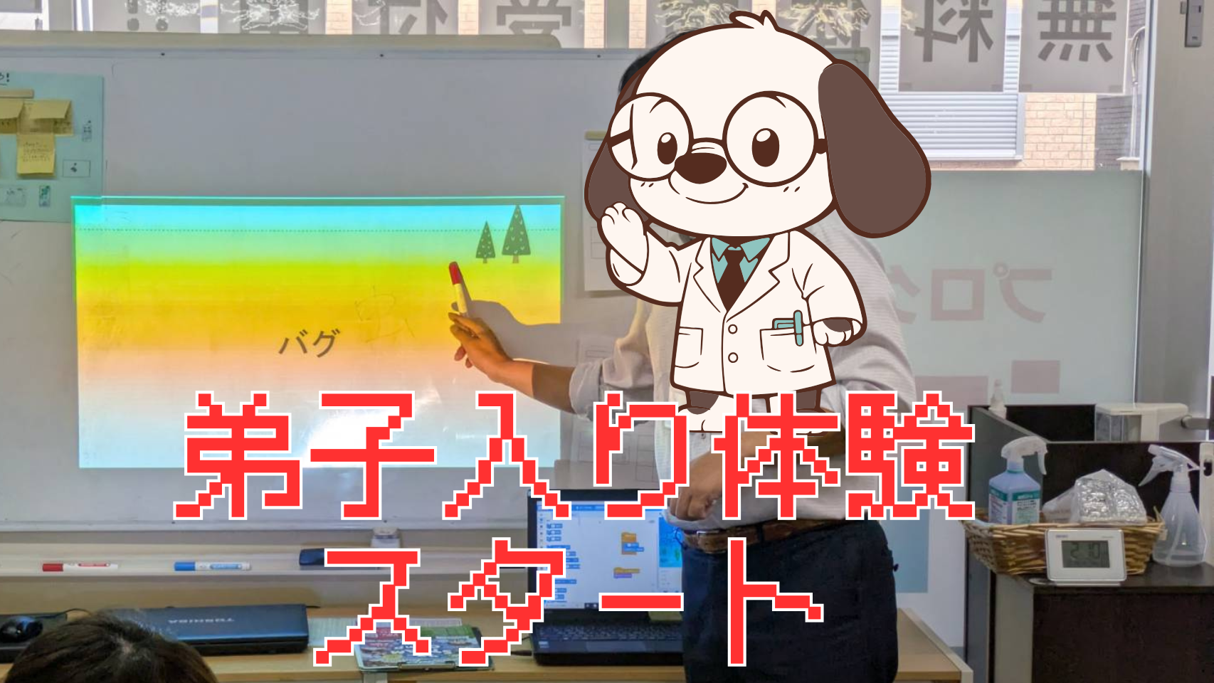 画面に「バグ」と映し出すと、子どもたちは「知ってる!」「ゲームでも聞いたことある!」と大盛り上がり。