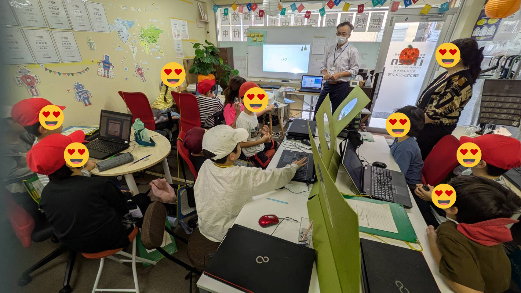 エラーが直り、キャラクターが動いた瞬間には、教室中から「できたー!」の声!
