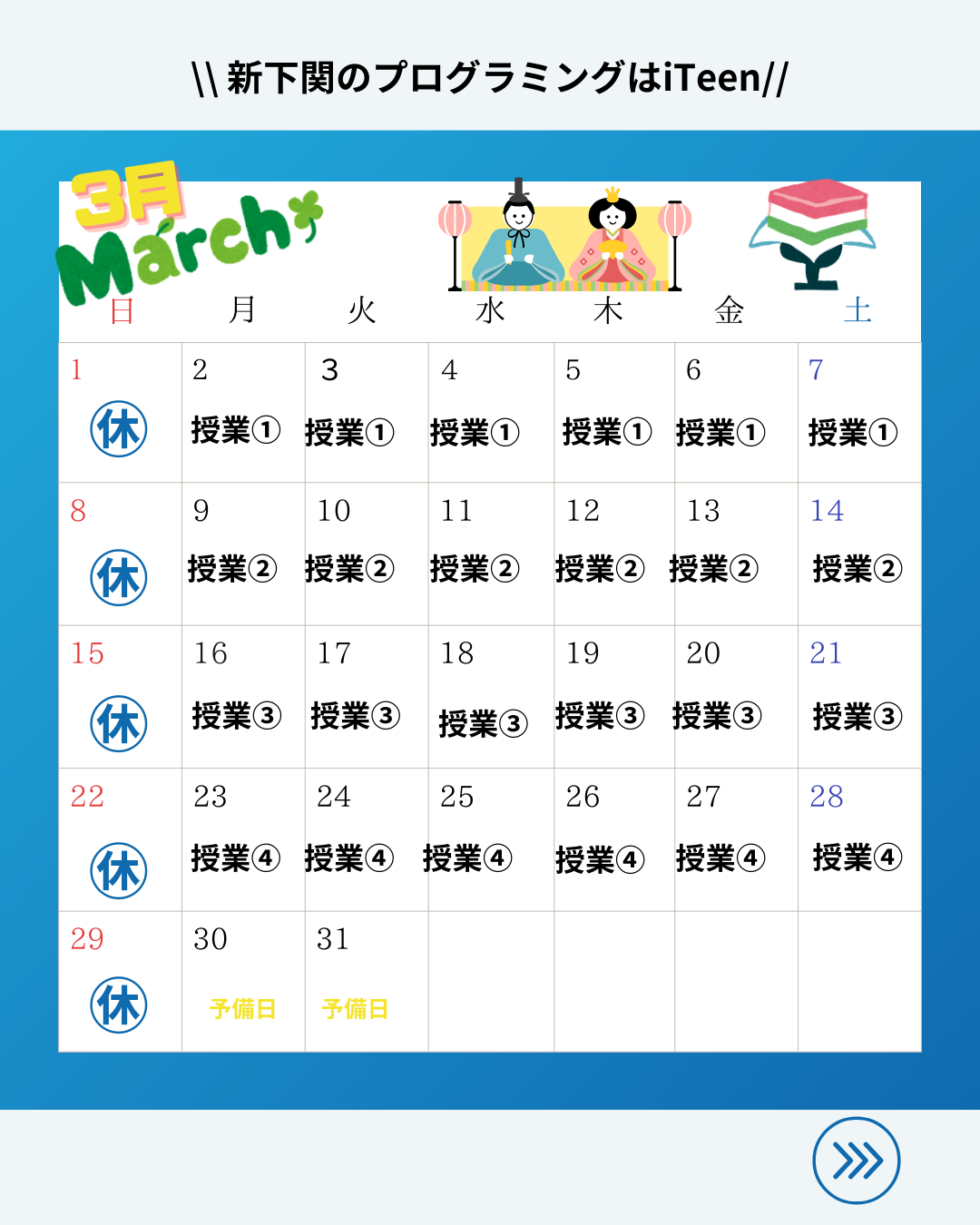 3月のスケジュールをお知らせいたします。