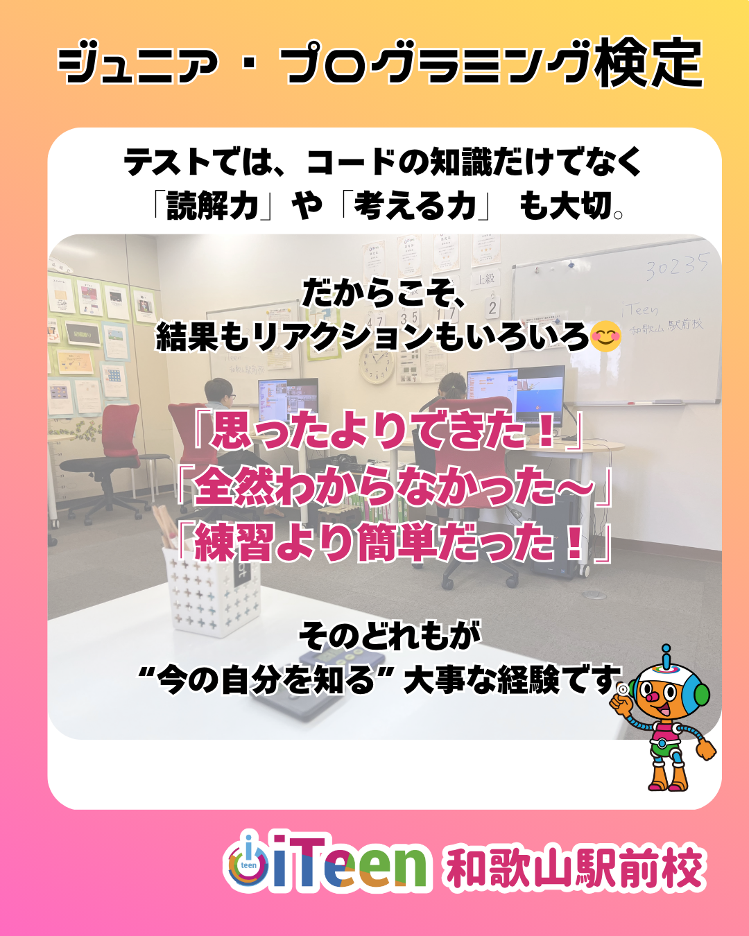 今月、そして来月にかけて実施する「ジュニア・プログラミング検定」。
